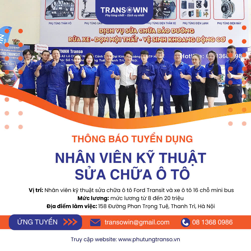 * Có ít nhất 1-2 năm kinh nghiệm trong lĩnh vực sửa chữa ô tô, đặc biệt là xe Ford Transit hoặc xe 16 chỗ mini bus.